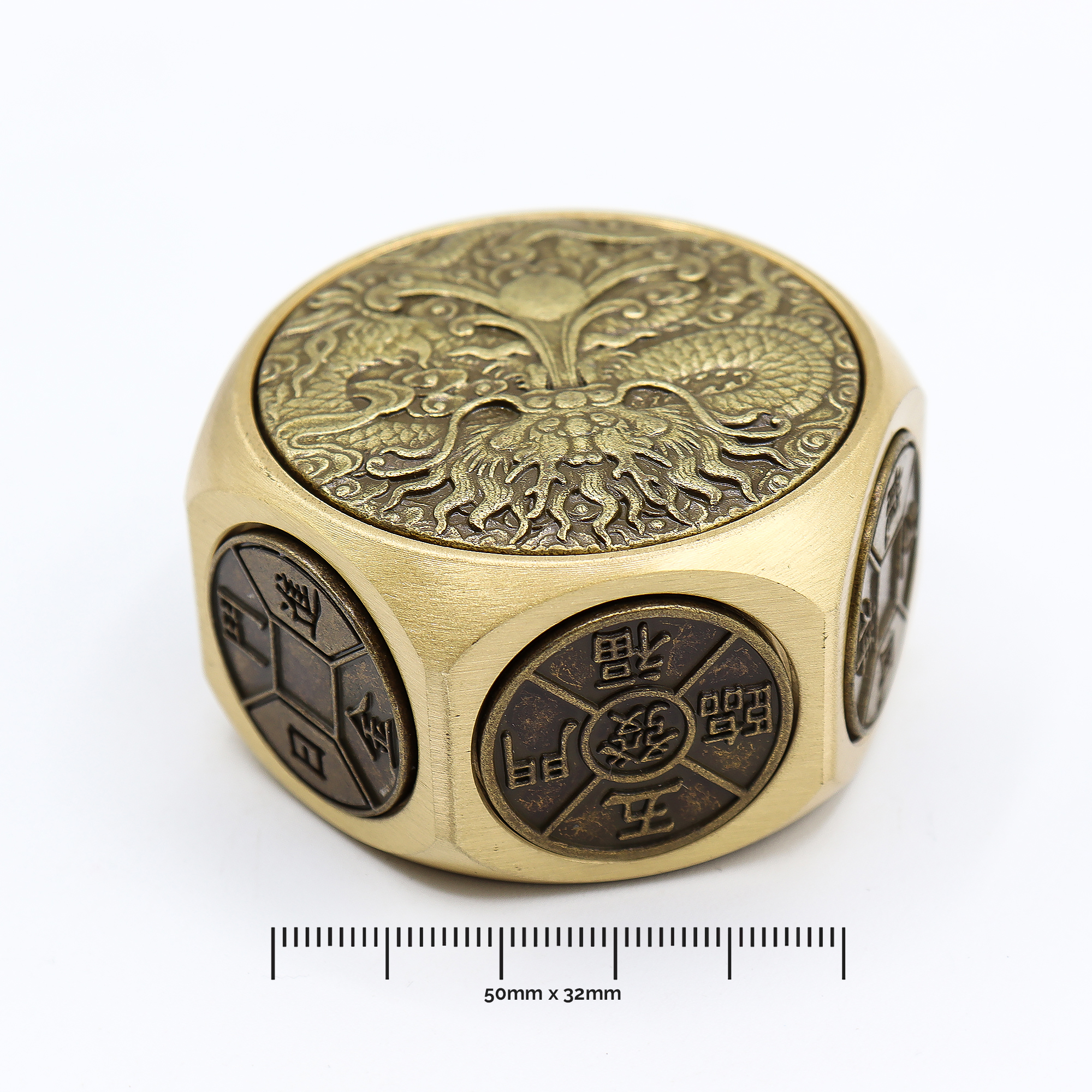 Feng Shui Šťastie – Červená a Mosadzná Kocka Prosperity – Plochá