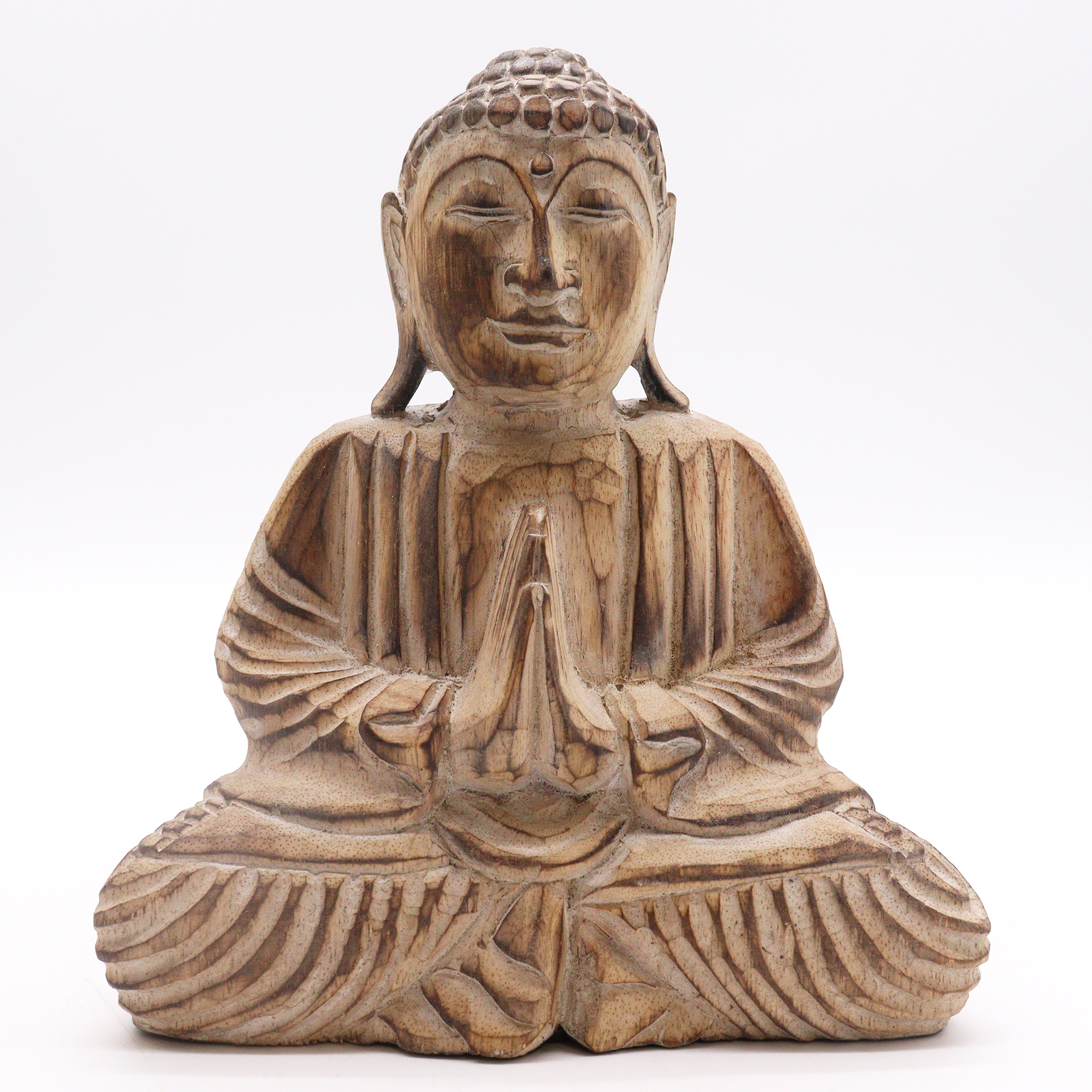 Zložito vyrezávaná figurína Budhu vyžaruje pokoj a dopĺňa ju klasický symbol mandaly predstavujúci jednotu a rovnováhu. Tento set vyrobený z udržateľného dreva albasia z Bali je v súlade s preferenciami ekologicky zmýšľajúcich spotrebiteľov.