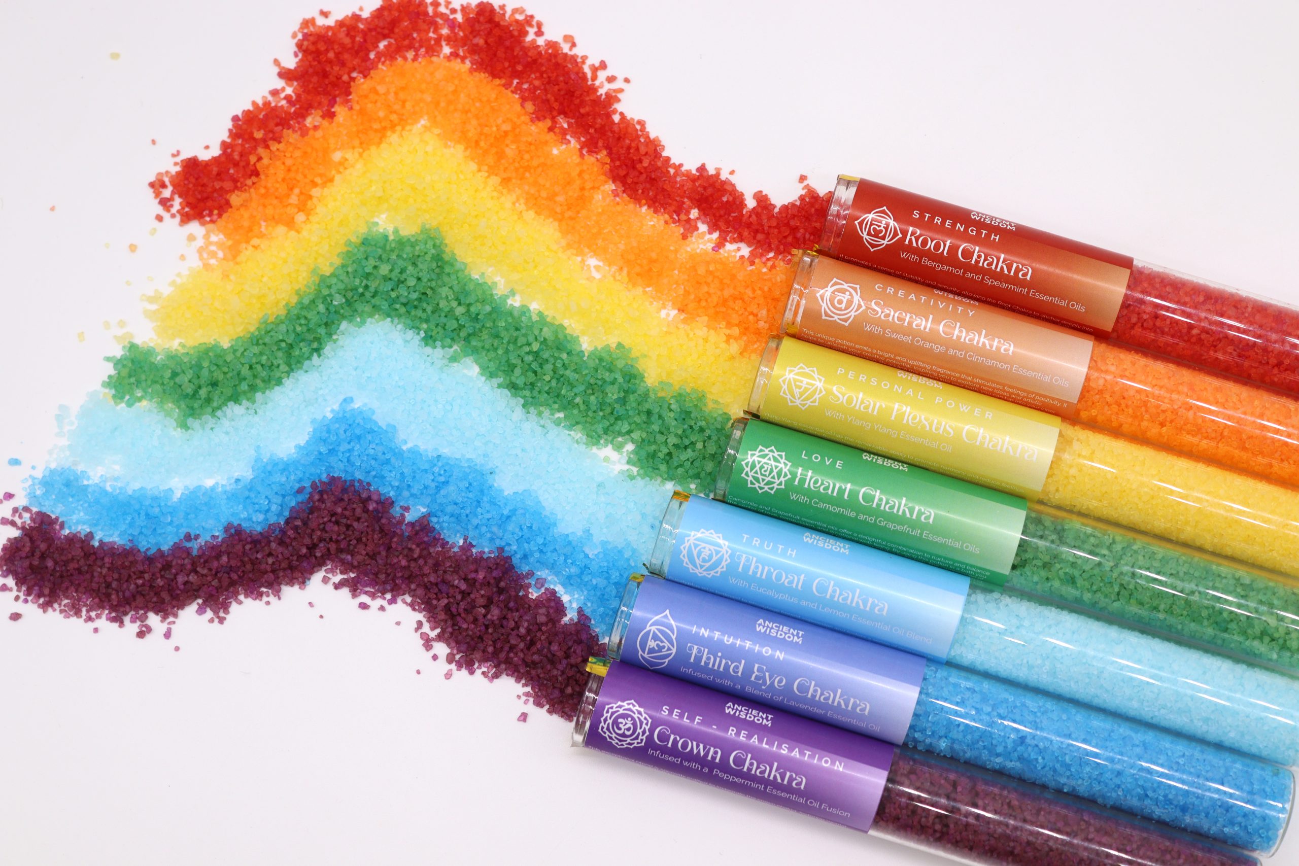 – Kúpeľová soľ pre korunnú čakru: Táto soľ do kúpeľa naplnená zmesou osviežujúceho mätového esenciálneho oleja je navrhnutá tak, aby oživila vašu korunnú čakru.