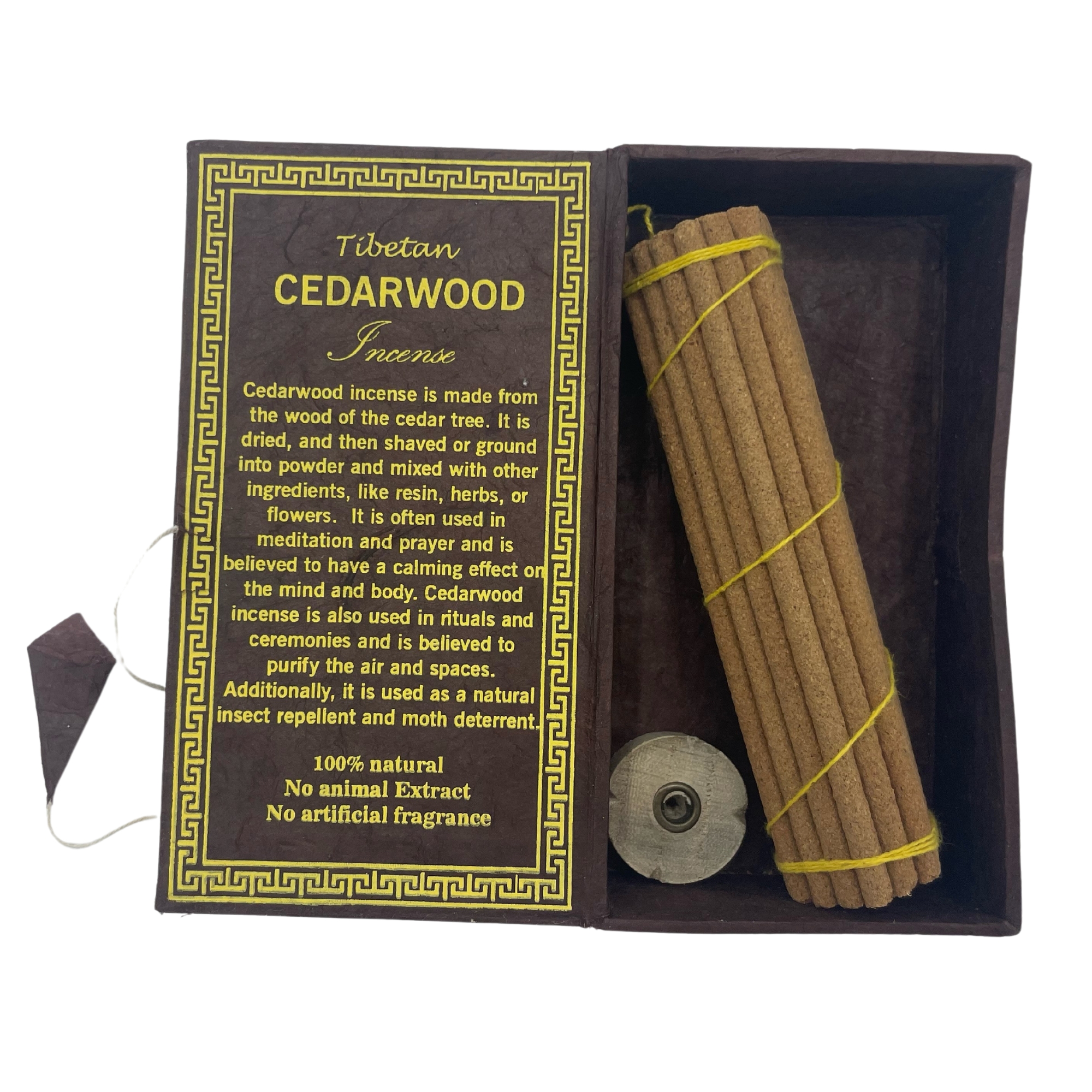 Tyčinky z cédrového dreva sa vyrábajú z dreva cédrového stromu. Vysuší sa a potom sa rozomelie na prášok a zmieša sa s inými zložkami, ako je živica, bylinky alebo kvety. Často sa používa pri meditácii a modlitbe a verí sa, že má upokojujúci účinok na myseľ a telo. Kadidlo z cédrového dreva sa používa aj pri rituáloch a obradoch a verí sa, že čistí vzduch a priestory. Okrem toho sa používa ako prírodný odpudzovač hmyzu a odpudzovač molí.