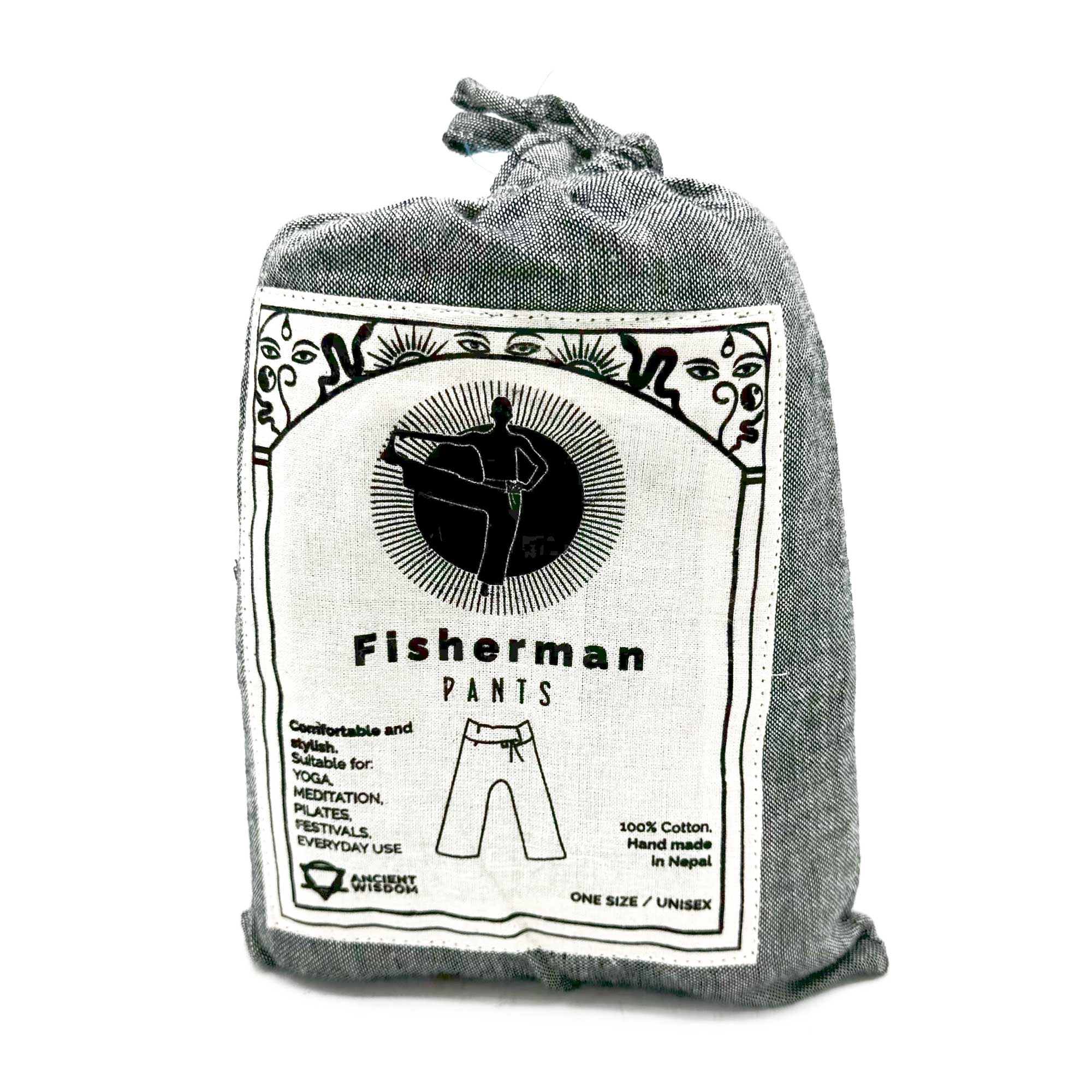 Pozdvihnite svoju zbierku s Jogovými a Festivalovými Nohavicami – Thajský Rybár Mandala Mantra – Šedé. Vyrobené pre pohodlie a štýl, vzdávajú hold majestátnemu Himaláji.