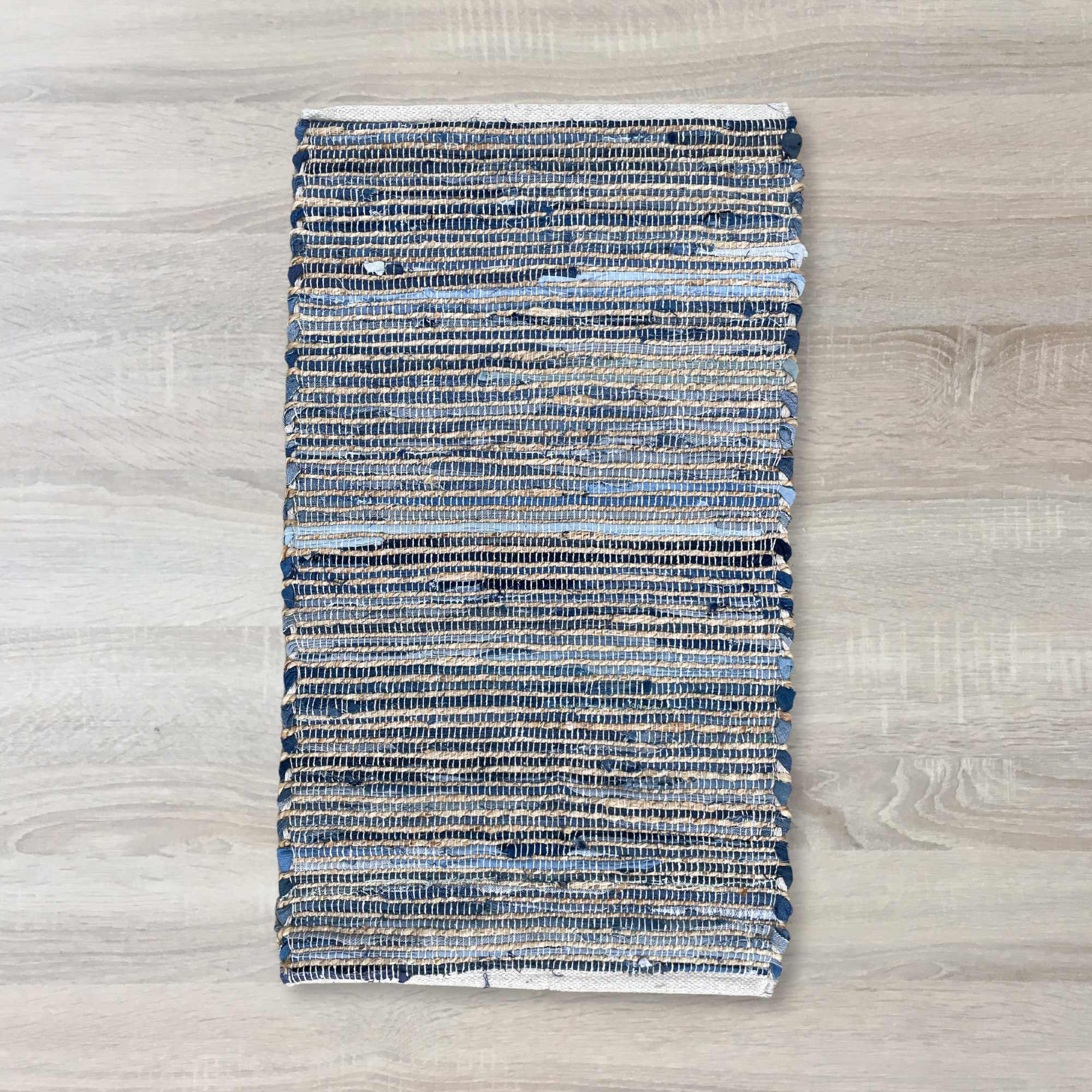 Malý Koberec z Juty a Recyklovanej Bavlny – 50 x 90 cm – modrý