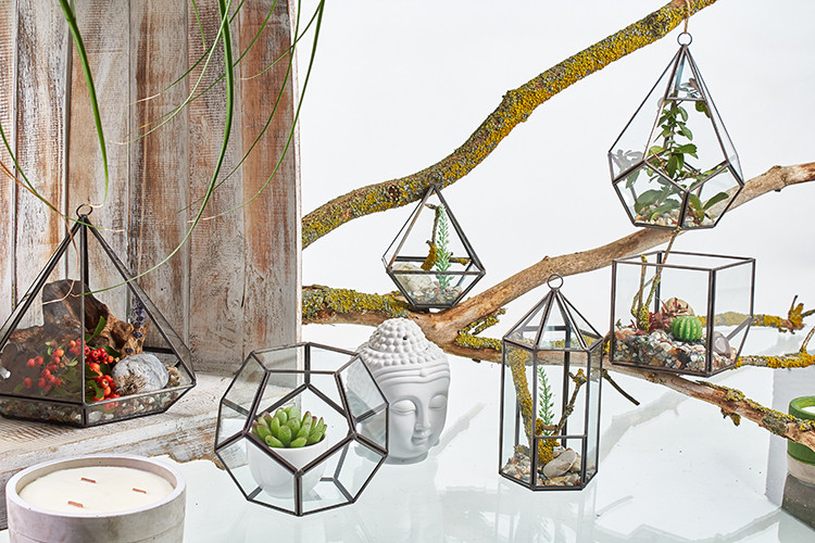 Terária taktiež známe aj ako florárium sú v súčasnej dobe veľmi módnou záležitosťou a tiež úžasným dekoratívnym prvkom, ktorý sa hodí do akéhokoľvek interiéru. Do našich Veľkoobchodných Sklenených Terárií si môžu vaši zákazníci priniesť kus prírody. Môžu ho napríklad vyplniť kamienkami, machom, vetvičkami a doplniť ich farebným listím alebo inými darmi prírody. Fantázii sa medze nekladú.