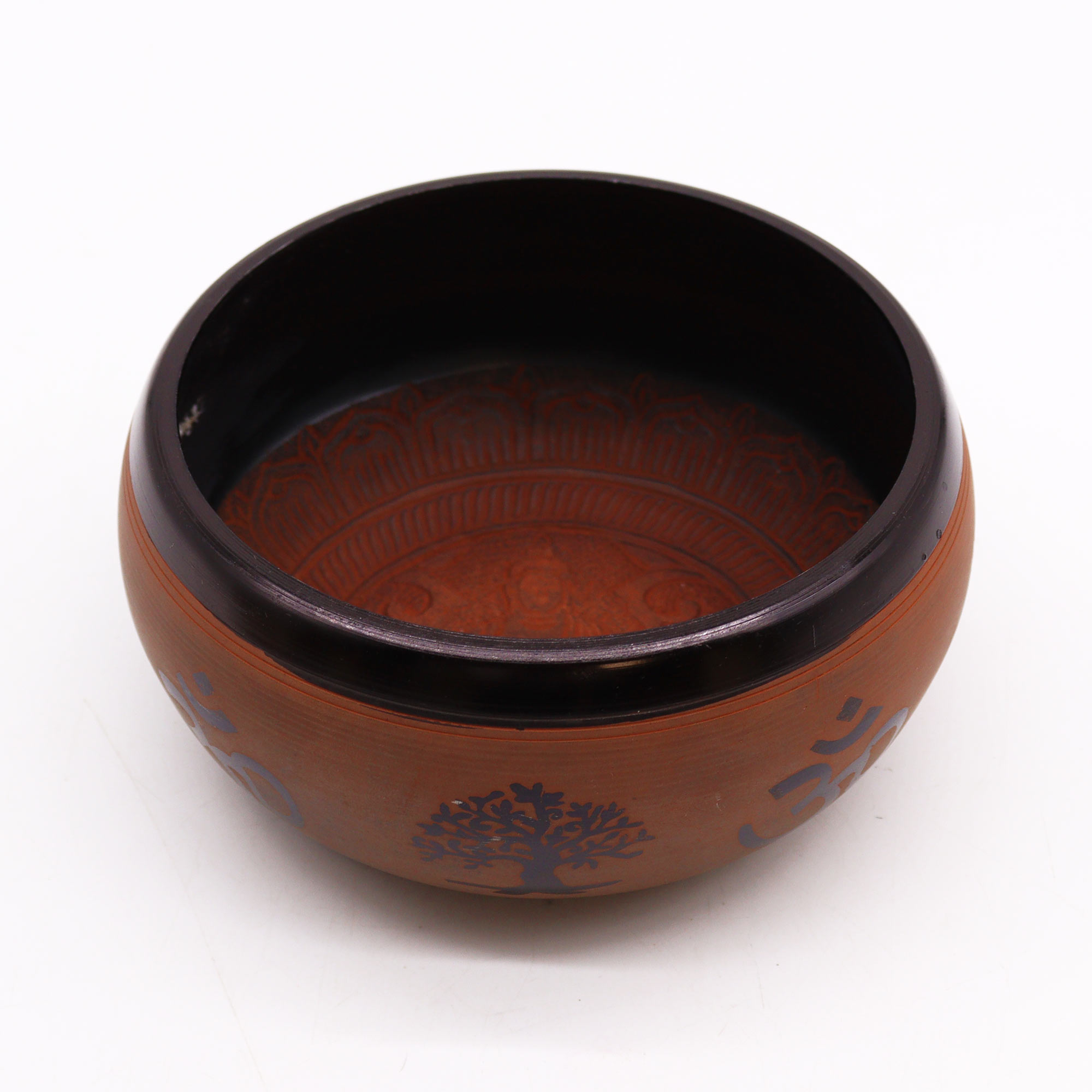 Táto 16 cm Spievajúca Miska zo Zemného Prášku má pokojný dizajn Hlinka Óm Budha. Ručne vyrobená zo zemného prášku spája estetiku s harmonickou rezonanciou.