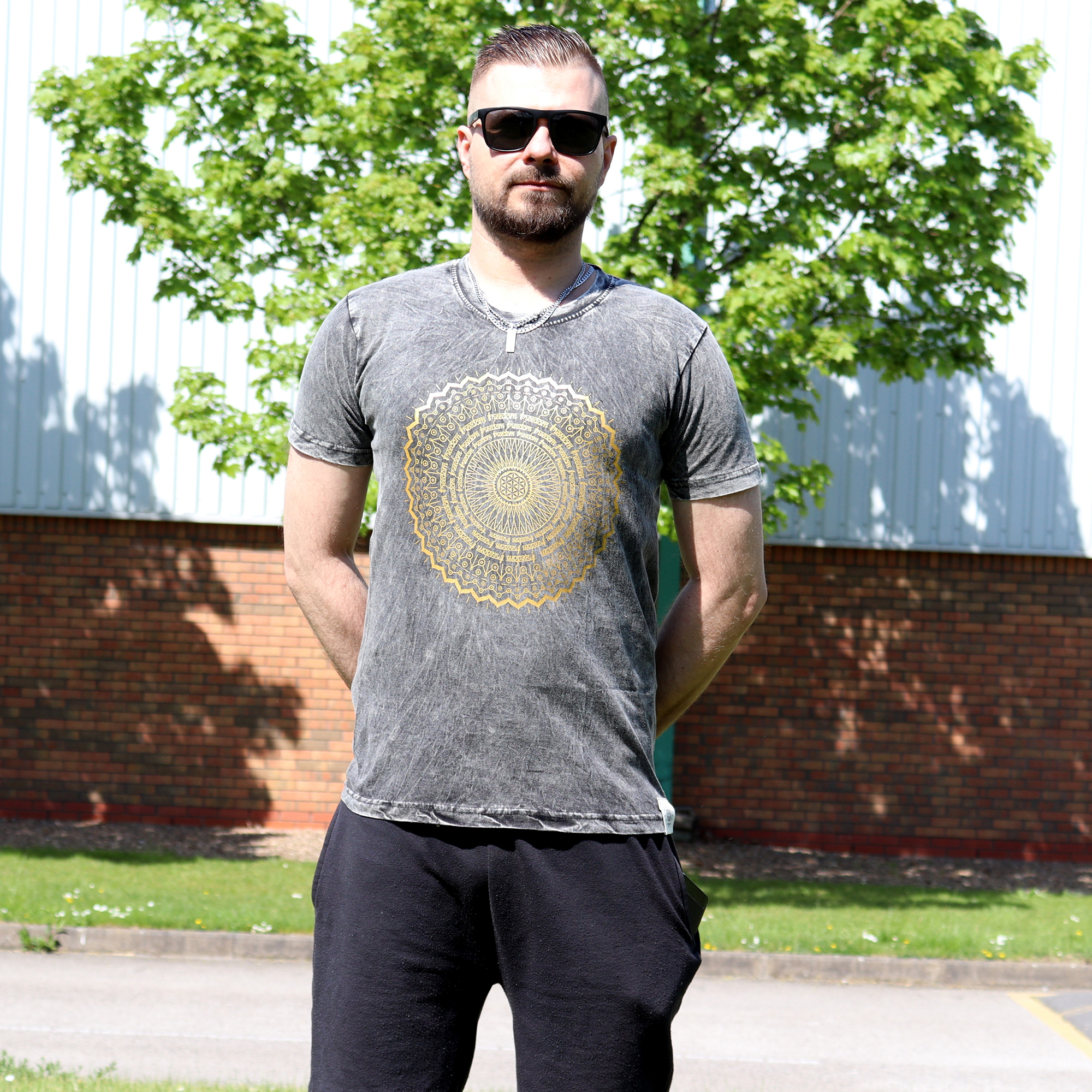 Stone Wash Tričko (S) – Mandala – Tmavo Šedé