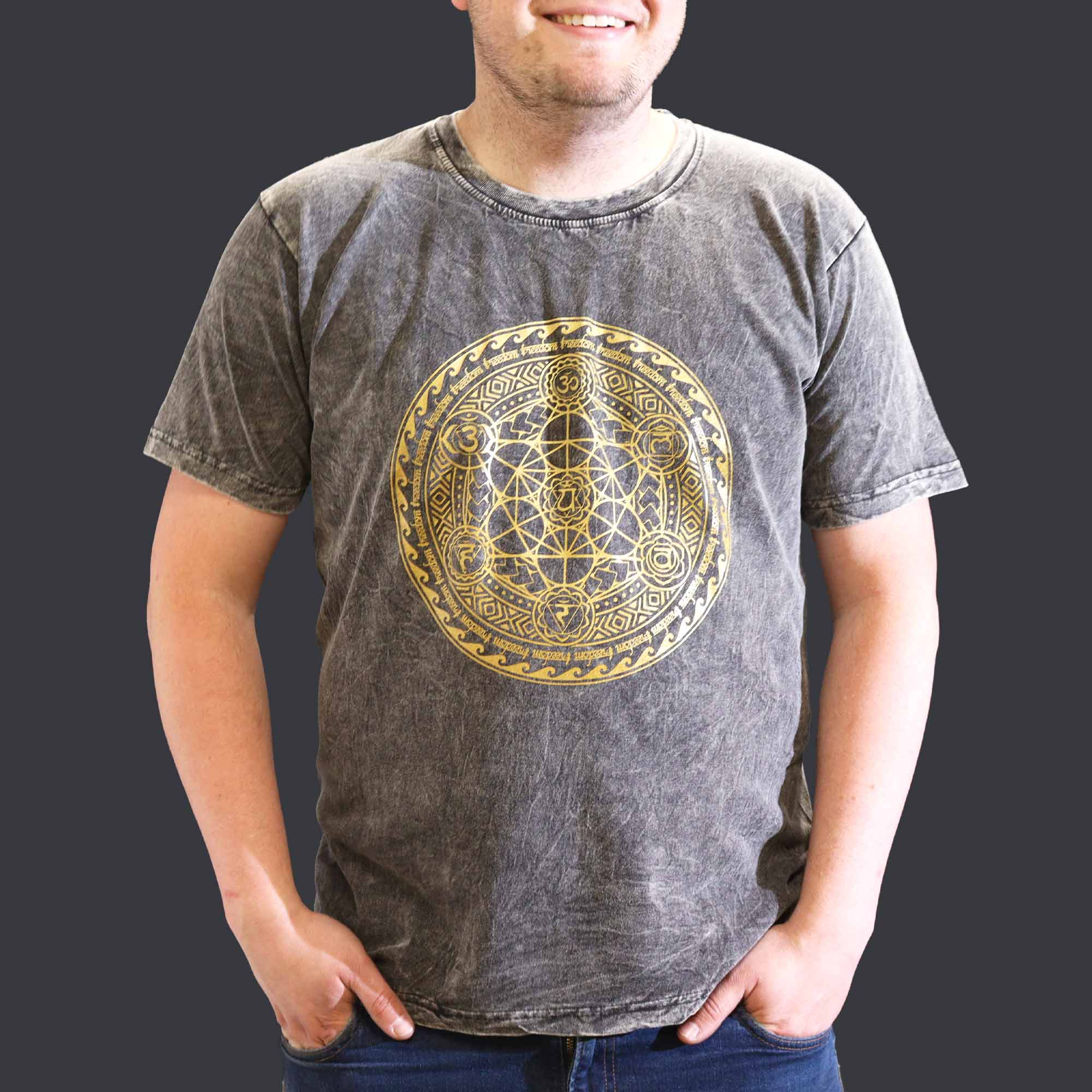 množstvo Stone Wash Tričko (XL) - Čakra - Tmavo Šedé