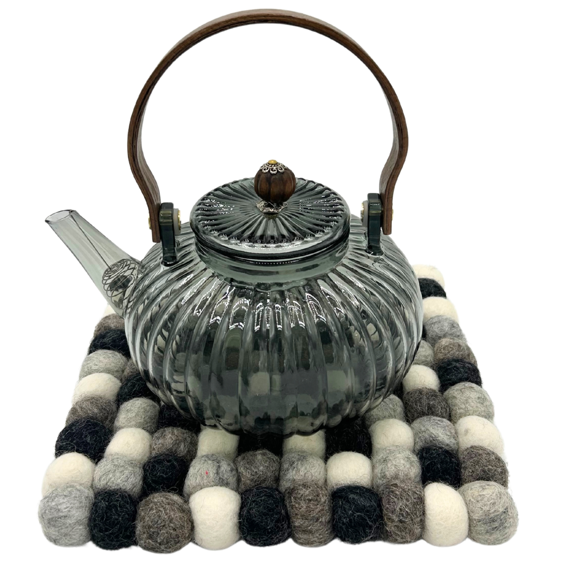 Štvorcové Podložky pod Poháre z Plstených Guľôčok – 20cm Viacfarebné Sivá Farba