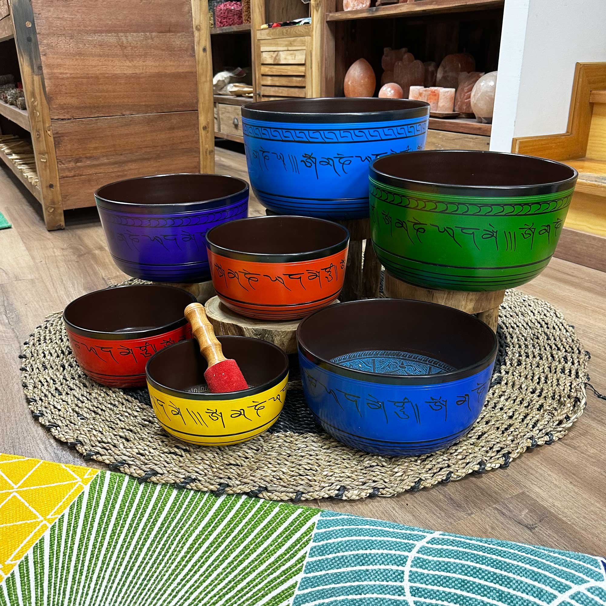 Táto súprava pozostáva zo siedmich veľkých tibetských spievajúcich misiek s veľkosťou od 19,5 cm do 35 cm. Každá miska je zložito navrhnutá tak, aby zodpovedala jednej zo siedmich čakier so živými farbami a symbolmi.