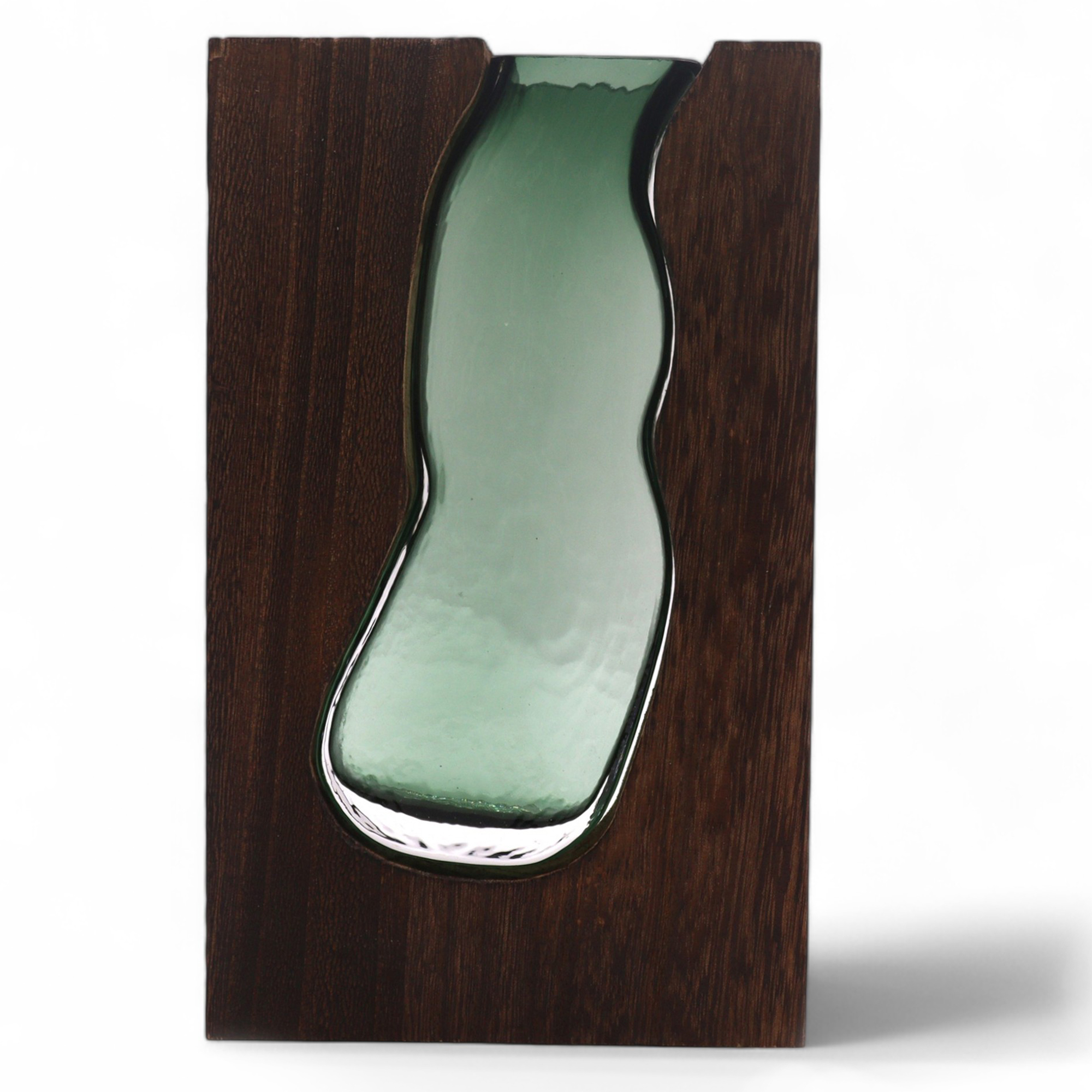 Veľká Sklenená váza / Terárium z Tmavého Tungového Dreva – 18x5x32cm