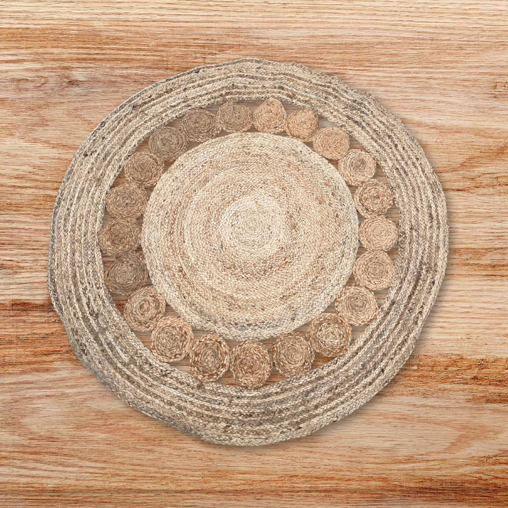 Veľký Okrúhly Mäkký Jutový Koberec s Kruhmi vo Vnútri 120cm