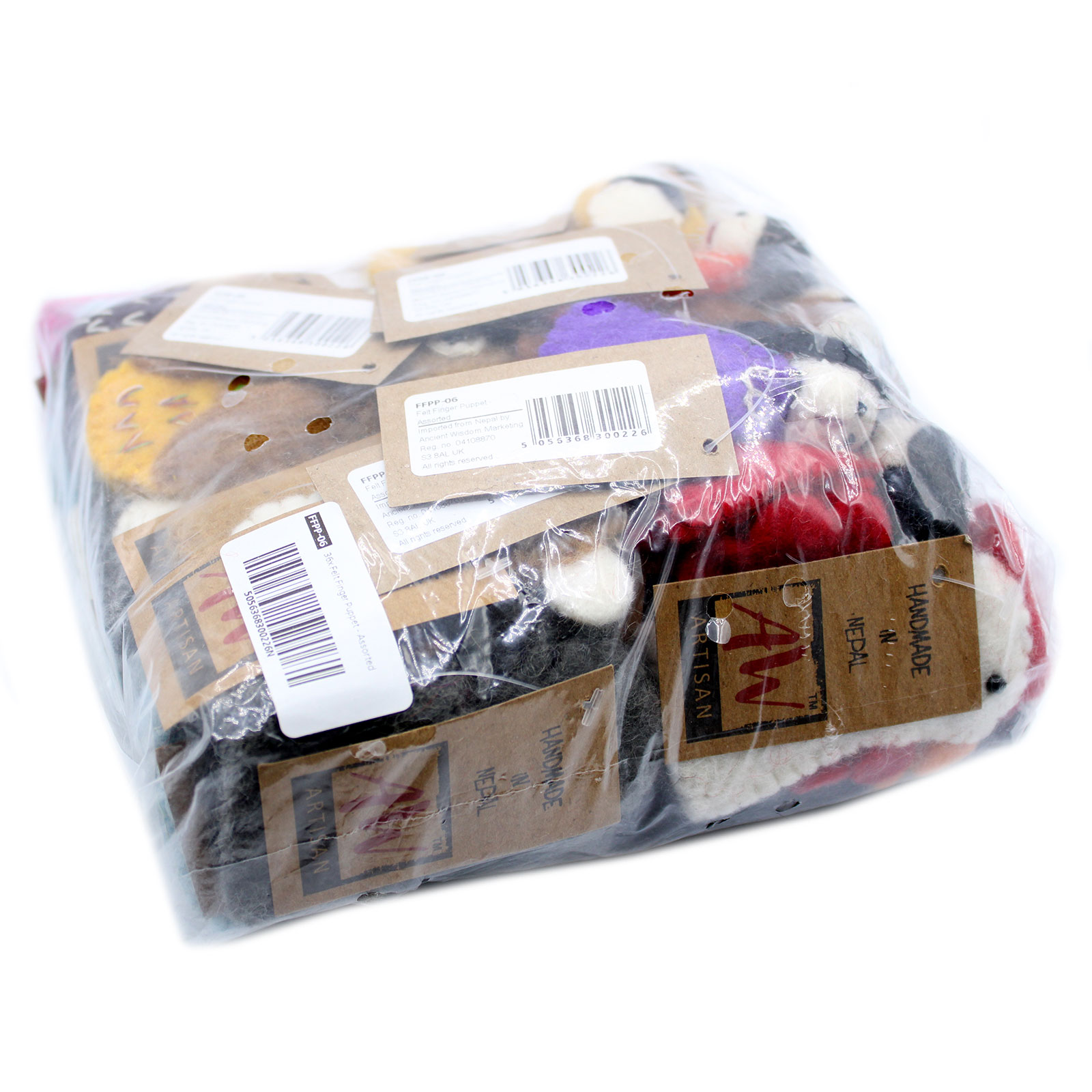 Sú výbornou pomôckou pre rozprávanie príbehov a vyjadrenie emócií. Ručne vyrábané z plsti v Nepále. Sú uzatvárateľné zipsom.